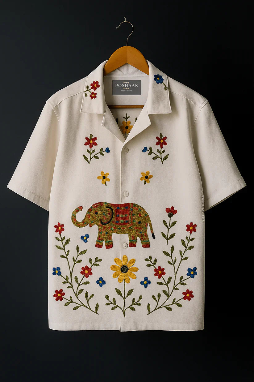 Premium Oversize Shirt Elephant Design, Premium Oversize Shirt Bird Design Late Night Layers – perfect for moonlit streets and good company. Designed for those who love bold prints and relaxed fits, this oversized Cuban collar shirt is your go-to for laid-back vibes and standout looks.